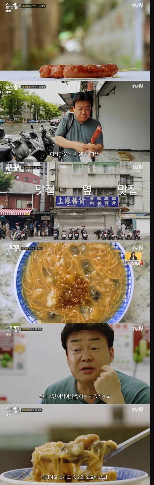 다음 골목으로 이동했다. 맛집인 듯 손님들이 줄 서 있었다. 알고보니 타이완식 소시지집이었다. 타이완은 "샹창이라는 말이 따로 있을 정도로, 소시지가 독특하다"면서 "달짝지근하고 맛이 참 독특하다"고 말했다.
