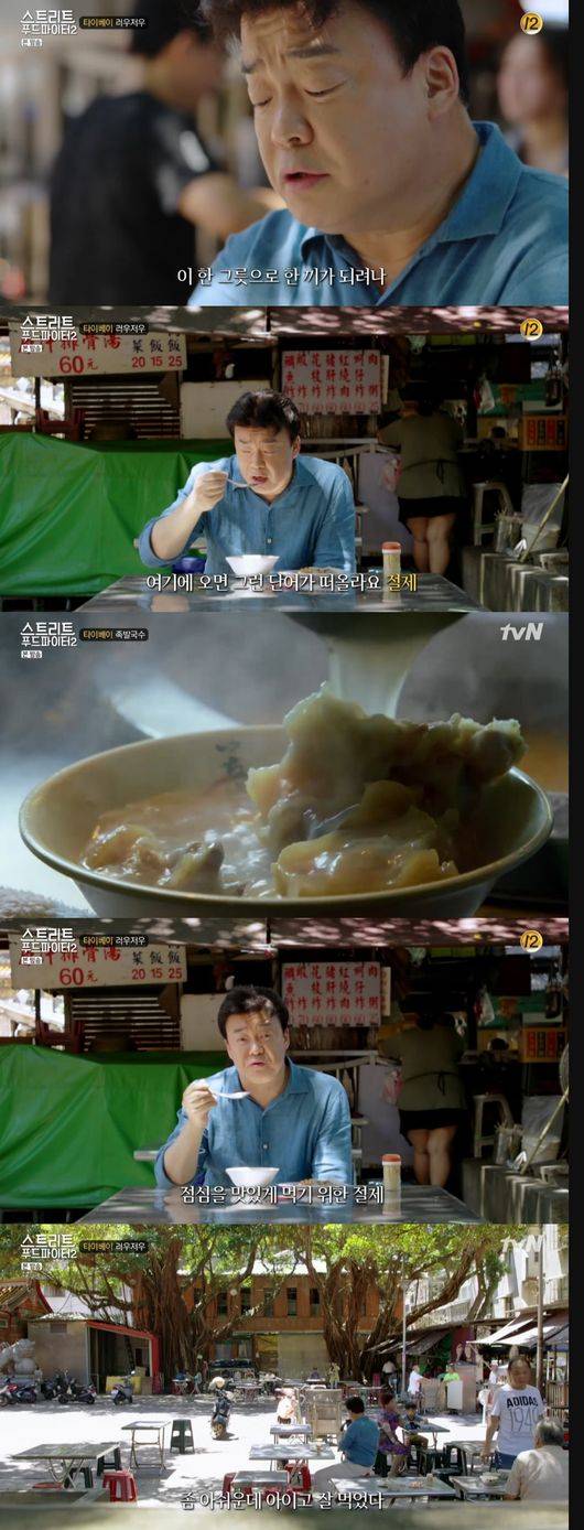 백종원은 "방콕에 족발밥이 있다면 타이베이에는 루러우판이 있다"면서 "여행을 가면 그 지역 사람들이 좋아하는 것을 먹어, 좋아하니까 많이 먹고, 많이 해먹으니 맛있을 수 밖에 없다"며 먹방에 빠졌다.