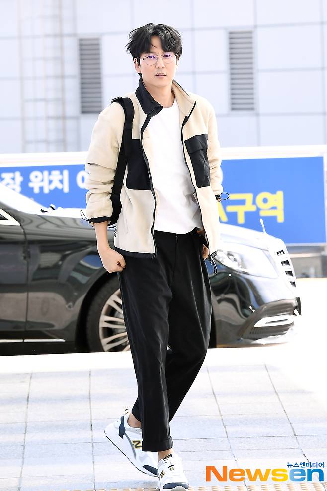배우 김남길(KIMNAMGIL)이 공항패션을 선보이며 포르투갈 리스본으로 출국하고 있다.