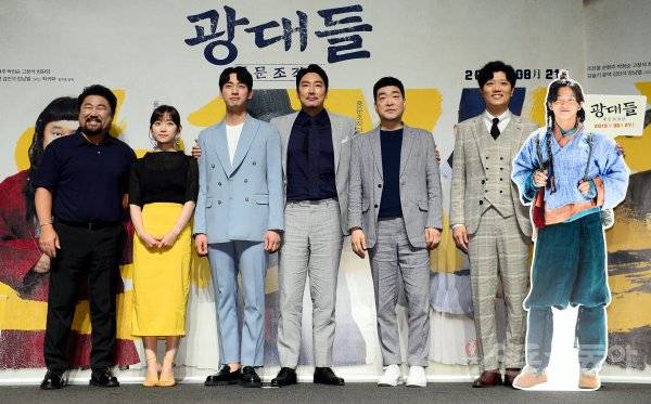 13일 서울 용산구 CGV용산아이파크몰에서 열린 영화 ‘광대들 : 풍문조작단’ 언론시사회에는 김주호 감독과 조진웅 손현주 박희순 고창석 김슬기 윤박이 참석했다.