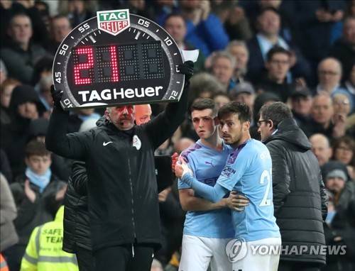 epa08020499 Manchester City's David Silva (R) is substituted with Phil Foden (C) during the English Premier League match between Manchester City and Chelsea in Manchester, Britain, 23 November 2019. EPA/JON SUPER EDITORIAL USE ONLY. No use with unauthorized audio, video, data, fixture lists, club/league logos or 'live' services. Online in-match use limited to 120 images, no video emulation. No use in betting, games or single club/league/player publications