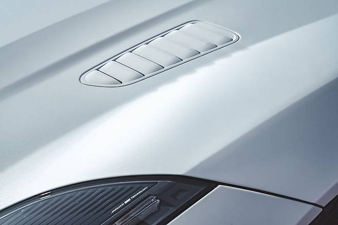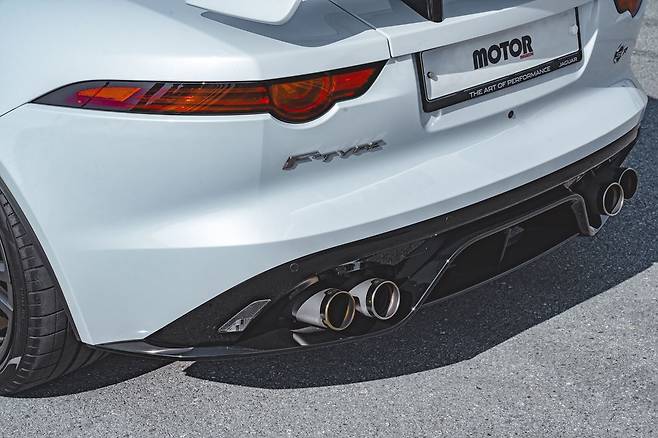 차체는 낮고 넙대대하다. 짧은 프런트 오버행으로 사냥을 준비하는 자세까지 완벽하다. 휠은 무광 블랙 20인치를 끼워놨는데 화이트 보디와 잘 어우러진다. 쿠페 모델이라 루프 라인까지 유려하다. L자 주간주행등을 품은 헤드램프와 가느다란 테일램프는 재규어 패밀리룩을 하고 있는데 사실 시작은 F-타입이다.