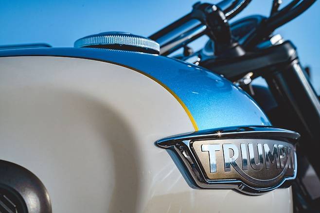 곳곳을 자세히 관찰해 보면, 트라이엄프만의 멋이 드러난다. 차체 오른쪽을 보면 엔진 하단 돌출부를 삼각형으로 다듬었는데, 트라이엄프 특유의 엠블럼과 잘 어울린다. 원형 헤드램프의 중단과 하단을 두르는 LED 주간주행등은 과거에는 볼 수 없었던 멋이다.