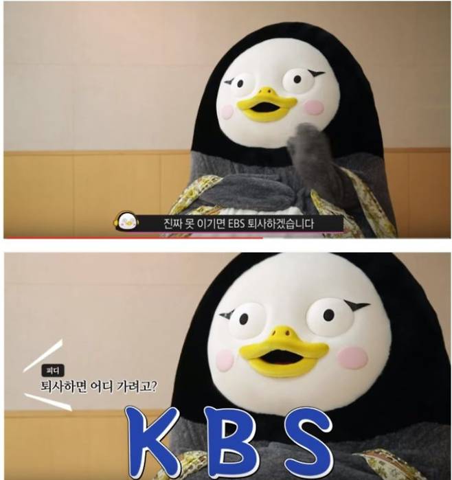 퇴사하면 KBS로 이직하겠다고 당당하게 선언하는 펭수! 펭수의 당돌한 이직 선언이 화제가 되자 KBS 공식 유튜브 채널은 "언제든 오라"며 러브콜 댓글을 달아 더 큰 화제가 됐답니다. 또 '준비는 펭수가, 돈은 김명중!'을 외치며 EBS 사장의 실명을 서슴없이 언급하는 펭수의 모습 역시 구독자들의 유머 코드를 자극합니다(당사자인 김명중 사장은 펭수가 이름을 언급하는 걸 은근히 재미있어한다는 후문). 자이언트 펭 TV를 연출 중인 이슬예나 PD는 한 인터뷰를 통해 “직장 생활에 지친 20, 30대 사회 초년병들이 펭수의 돌직구 발언에 대리만족을 느끼는 것 같다”고 얘기했어요. 펭수만의 솔직하고 거침없는 말과 행동이 그야말로 사이다라는 뜻! 20, 30대 동년배들의 마음을 사로잡으며 나날이 높아져가는펭수의 인기. 펭수가 더 궁금해졌다면? 지금 '자이언트 펭TV'를 방문해보세요!