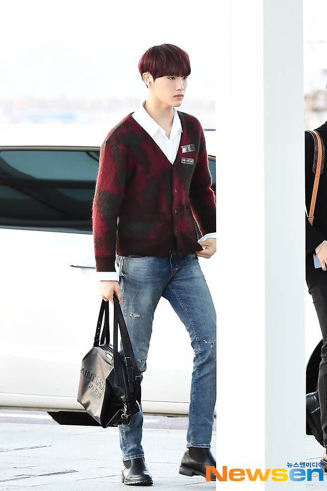 씨아이엑스 (CIX) 멤버 현석이 태국 방콕으로 출국하고 있다.