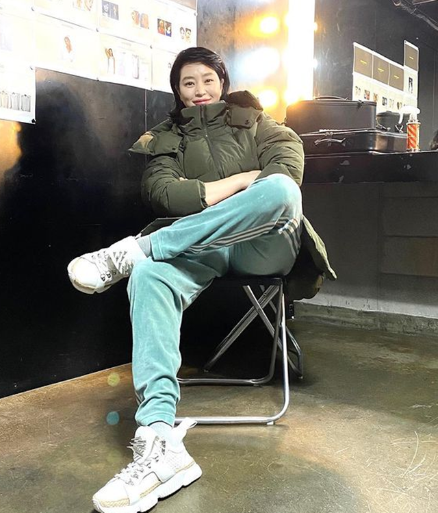 사실 이 하늘색 트레이닝복은 김혜수의 최애템으로 현장에도 자주 입고 등장한다.