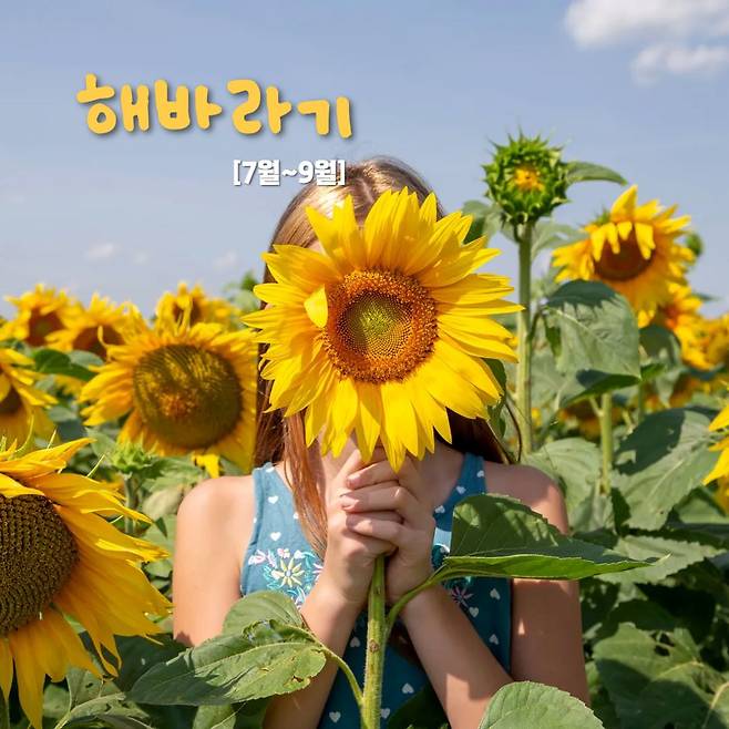 해바라기는 한 해살이 식물로, 꽃이 진 뒤에는 씨앗도 얻을 수 있어 실용적인 매력도 겸비한 여름에 피는 꽃이랍니다.
