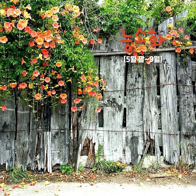 능소화는 담장이나 벽을 타고 오르는 덩굴식물로, 아래에서 화려한 나팔 모양이 인상적인 여름에 피는 꽃인데요. 고풍스러운 고택이나 한옥 담벼락에서 볼 수 있어 한국적인 정취를 느끼기에 좋습니다.