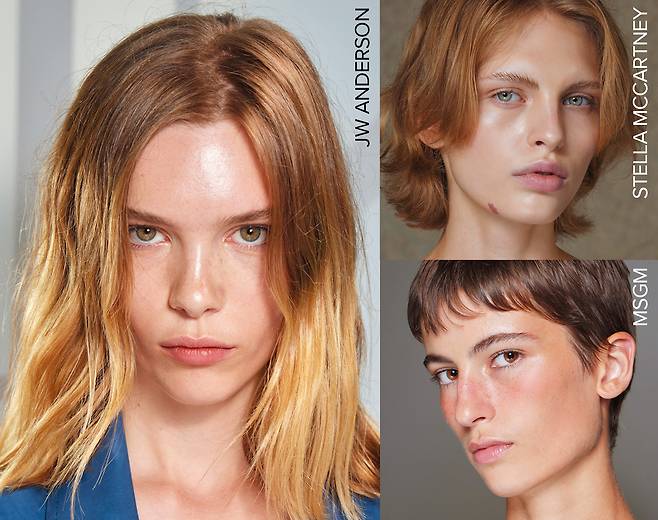 이번 시즌엔 매끈한 피부 위에 유려하게 흐르는 윤기와 건강한 피붓빛을 완성하는 발그레한 블러셔만 기억하길. 마르니 쇼에서는 피부를 매끄럽게 표현한 뒤 볼록한 광대 부근에 맑은 핑크를 터치했고, MSGM의 모델은 진저 레드를 양 볼과 콧등에 이어 발라 내추럴한 룩을 표현했다. 헬시 글로 트렌드는 당분간 지속될 테니 촉촉한 크림이나 리퀴드 타입 핑크 블러셔는 무조건 사수할 것.