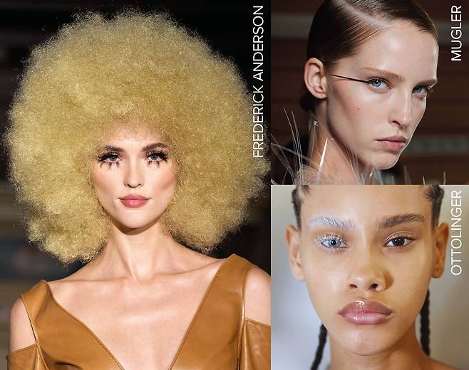 과장되고 비정형적인 아이래시는 예술적 경지에 이르렀다. 뮈글러의 모델은 까치 꼬리처럼 속눈썹을 길게 연장했으며, 드리스 반 노튼 쇼 역시 깃털을 붙여 드라마틱한 아이래시를 선보였다. 한편 금방이라도 날아오를 듯한 ‘래시 윙’을 연출하고 싶다면, 무엇보다 본연의 속눈썹을 풍성하게 케어하는 것이 중요하다는 걸 기억하자.