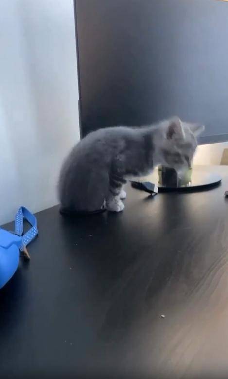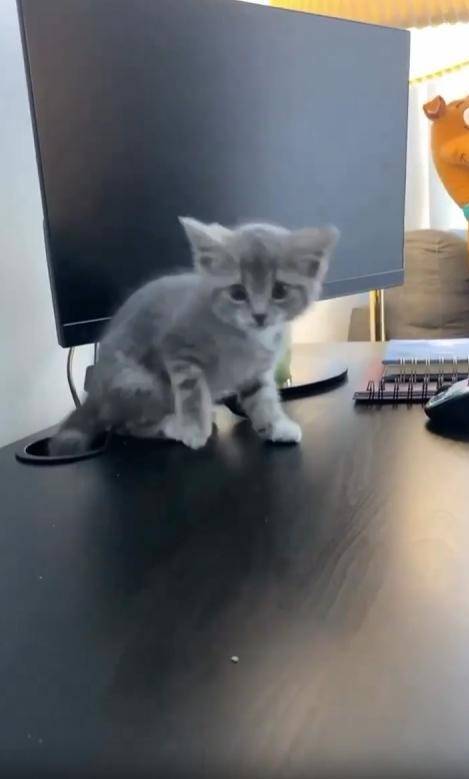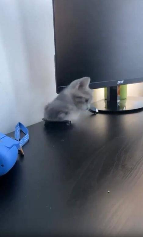 “어라?” 순간 고개를 내민 건 다름 아닌 새끼 고양이였습니다. 아직 세상 모든 것이 신기할 나이의 아기 고양이는, 책상 아래 어둠 속을 탐험하다 구멍의 존재를 알아챘던 모양입니다. 호기심 가득한 눈으로 바깥을 살피며 머리를 밀어 넣고, 마침내 얼굴 전체를 빼꼼 내밀었지요. 작은 콧구멍이 킁킁, 초점 없는 시선으로 이리저리 살피는 모습이 어찌나 사랑스러운지 보는 이의 입꼬리가 절로 올라갑니다.