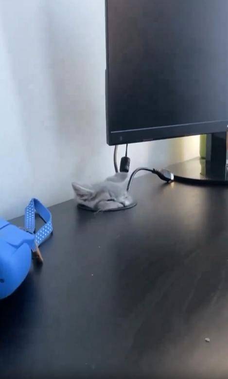 컴퓨터 책상 위, 전선 정리를 위해 뚫려 있는 작은 구멍. 보통은 전선만 지나가는 조용한 공간이지만, 오늘은 조금 특별한 일이 벌어졌습니다. 구멍 속에서 무언가가 꿈틀거립니다. 조용히, 아주 천천히... 그러다 마침내, 복슬복슬한 귀 두 개가 삐죽.