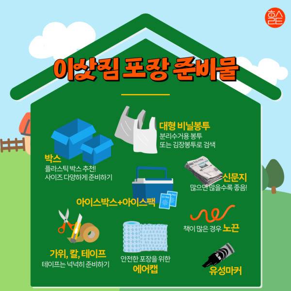 또 이사 과정에서 나오는 쓰레기를 처리하기 위해 50L 종량제봉투 최소 2장은 준비해놓자.