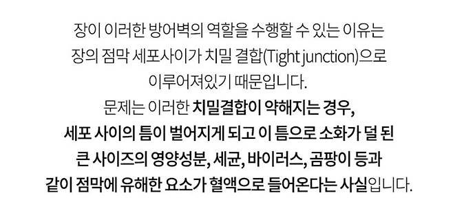 특히 장은 면역세포의 70% 이상이 분포하는 중요한 기관입니다. 장 건강이 나빠지면 면역력이 저하되고, 장 속에 쌓인 독소가 장 점막을 자극하여 염증을 유발하고 부식시킬 수 있습니다. 장 점막이 손상되면 독소가 혈관으로 들어가 간, 혈액, 피부에 쌓이게 됩니다.