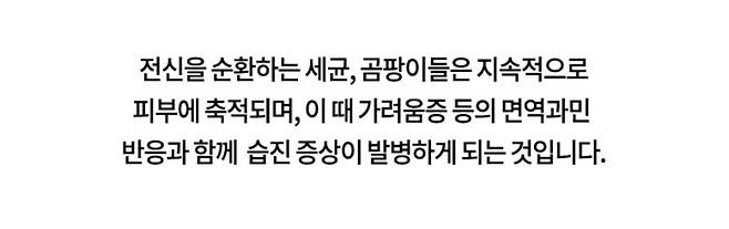 • 진물: 가려움 때문에 긁게 되면 피부에 진물이 생길 수 있습니다. 끈적하고 노란 액체인 진물은 다른 부위로 번져 병변 부위를 넓힐 수 있습니다. 또한, 진물은 피부 방어막을 약화시켜 2차 감염의 위험을 높입니다.