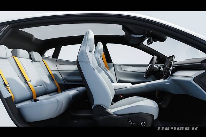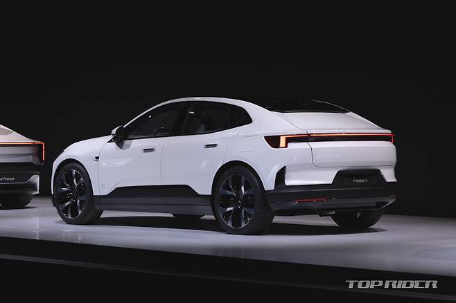 차체 크기는 전장 4839mm, 전폭 2139mm, 전고 1544mm, 휠베이스 2999mm다. 폴스타4는 기존 SUV의 루프라인을 단순하게 바꾸고 2열 헤드레스트를 더 뒤로 배치하는 등 설계부터 2열 탑승자의 편안함이 고려됐다. 리어 윈도우를 대신해 확장된 글라스 루프가 배치됐다.