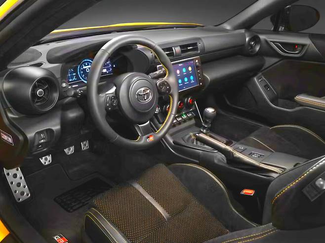이전 모델과 마찬가지로 GR86유즈 에디션은 노란색 외장과 광택 블랙 액센트로 차별화했으며 실내는 노란색 장식이 적용된 인조 스웨이드 앞좌석과 스티어링 휠, 주차 브레이크 레버, 도어에 노란색 스티치 처리로 완성됐다.