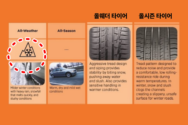 최근 중부지방에 내린 기습적인 폭설로 인해 타이어 선택을 두고 고민하는 운전자들이 급증하고 있다. 특히 최근 몇 년 사이 올시즌 타이어 외에 올웨더 타이어라는 새로운 카테고리가 등장하면서 선택은 더 복잡해졌다. 이름은 비슷하지만 성능과 목적이 완전히 다르기 때문이다. 문제는 많은 운전자들이 이 차이를 제대로 이해하지 못한 채 가격이나 브랜드 이미지만 보고 결정하는 경우가 많다는 점이다.