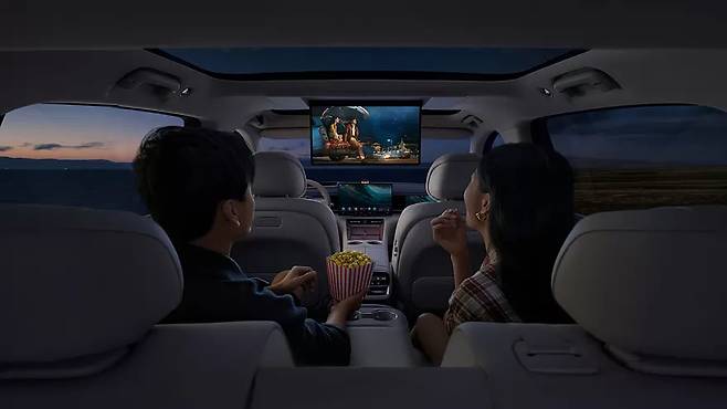 앞 좌석 승객을 위해서는 동일한 크기의 별도 스크린이 마련됐으며, 중앙에는 16.1인치 대각선 길이의 인포테인먼트 시스템용 플로팅 터치스크린이 설치됐다. 또한 2열 승객을 위한 대형 스크린도 추가로 제공된다.