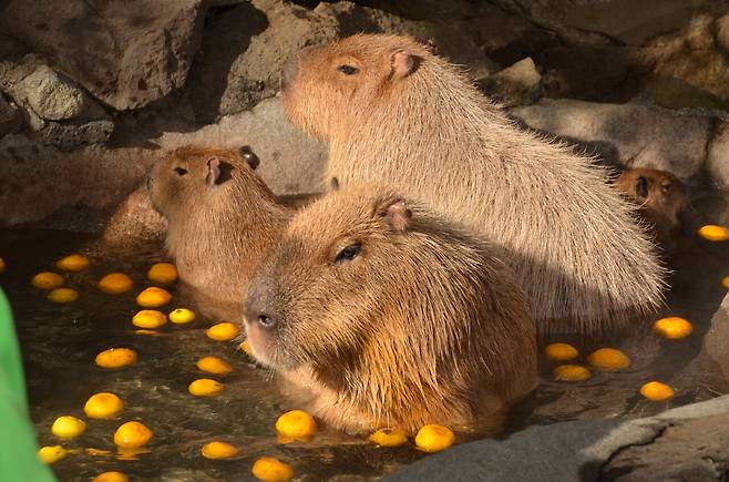 매년 겨울이 되면 유자탕, 장미탕 등 테마가 있는 온천에서 평화롭게 시간을 보내는 카피바라들을 볼 수 있는데, 그 모습이 너무 귀엽답니다. 귀여운 얼굴에 김이 모락모락 올라오는 모습의 카피바라, 올겨울 일본 여행은 시즈오카 어떠세요?
