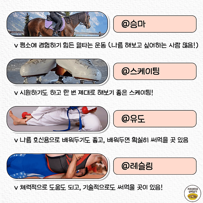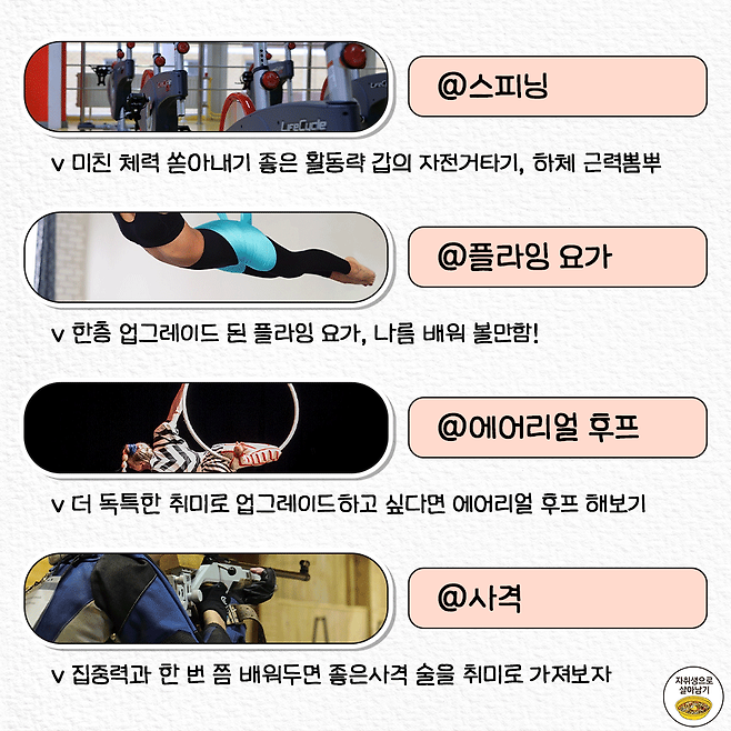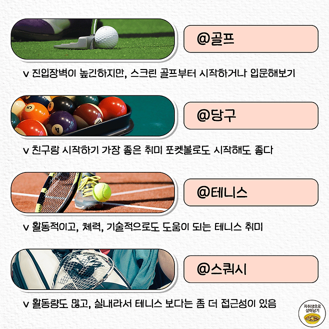 집 밖으로 나가볼까? 밖에서 하는 활동적인 취미들
