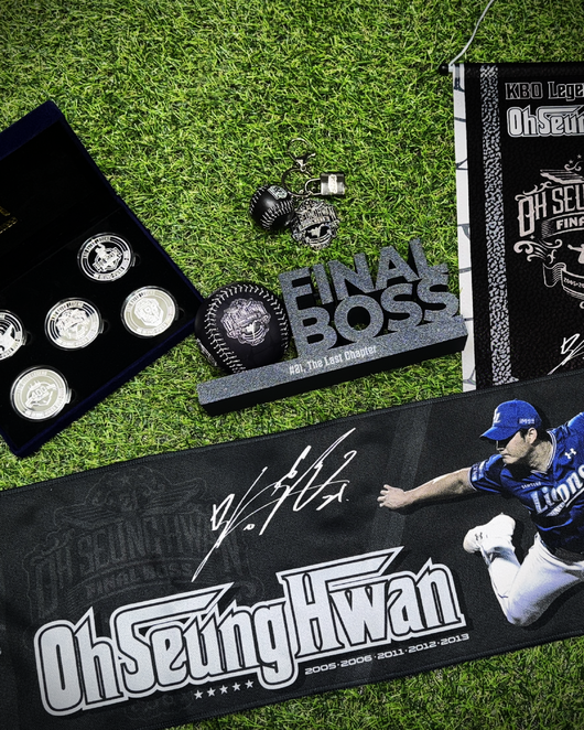 기념 굿즈는 유니폼, 모자, 타월, 오르골, 주화, 기념구 세트, 페넌트 깃발, 키링 등으로 구성됐다. 모든 상품은 ‘FINAL BOSS’ 로고와 오승환의 등번호 21번, 역투 실루엣이 세련되게 담겼다.