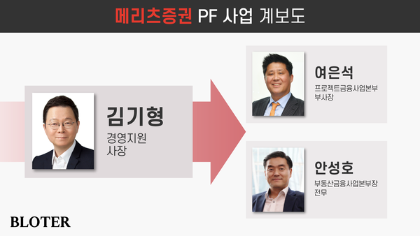 메리츠증권은 2010년부터 본격적으로 프로젝트파이낸싱(PF) 사업에 뛰어들어 공격적으로 외형을 확장했다. 당시 PF 조직을 이끈 인물은 김기형 경영지원 사장이다. 지난해까지 메리츠증권 기업금융사업부문장을 지낸 그는 현재 경영지원 부서를 총괄하고 있다.