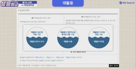 재활용 용이성에 따라 최우수, 우수, 보통, 어려움으로 등급화
