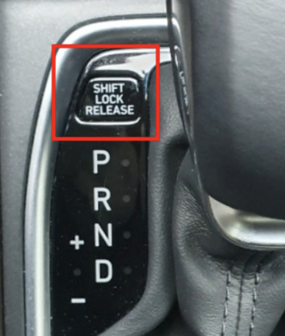 이제, 기어 레버 주변에 있는 'SHIFT LOCK RELEASE'라고 쓰인 작은 뚜껑을 자동차 키나 얇은 도구로 열어줍니다.
