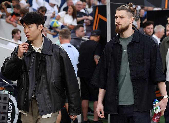 검은 자켓을 오버핏으로 입은 손흥민. 의외인 건 현지팬의 반응이었다.