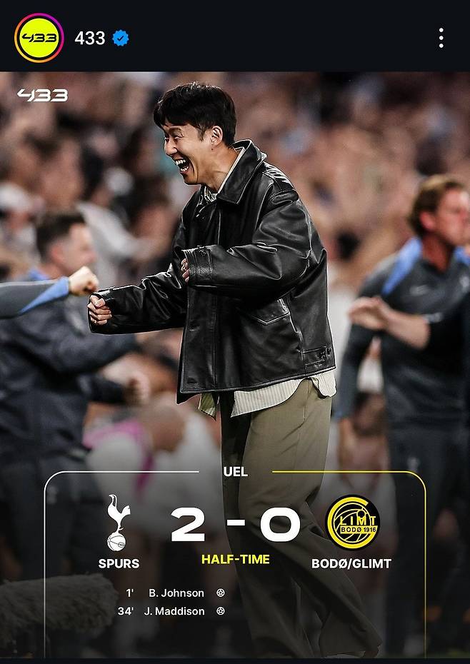 유로파리그 4강 1차전 보되/글림트전에서 부상으로 명단 제외된 손흥민.