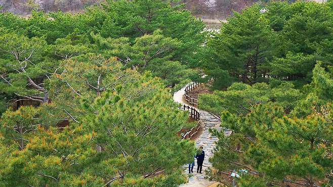 ‘산소길’이라는 별칭답게 빽빽한 소나무 숲이 길을 감싸며 걸음을 내딛는 순간마다 피톤치드를 내뿜는다. 흙길과 나무 데크가 자연스럽게 이어져 있어 아이부터 어르신까지 누구나 무리 없이 즐길 수 있다.