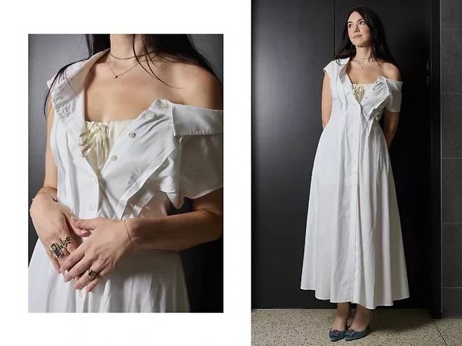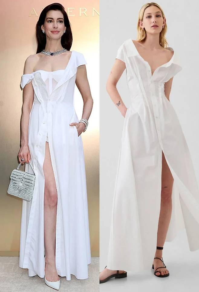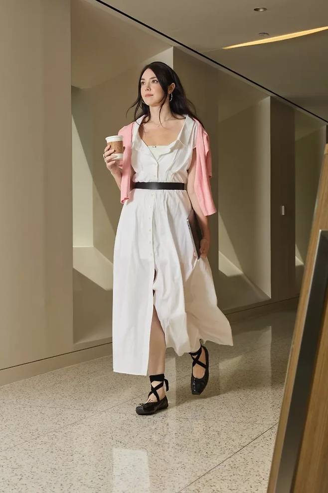 이날 앤은 GAP의 화이트 코튼 롱드레스에