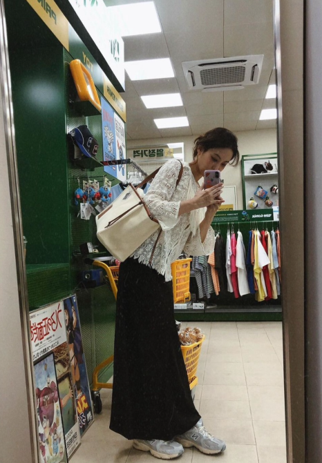 운동화와 함께 매치한 심플한 룩은 꾸안꾸의 정석을 보여주며, 편하면서도 감각적인 분위기를 자아냅니다. 진짜 하이라이트는 발끝을 완벽하게 책임지는 뉴발란스 530!