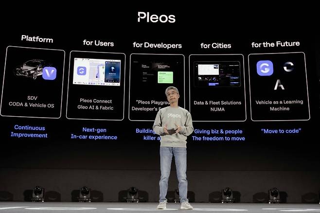 송창현 사장은 차량 제어 운영체제 ‘Pleos Vehicle OS(플레오스 비히클 오에스)’와 차세대 인포테인먼트 시스템 ‘Pleos Connect(플레오스 커넥트)’도 함께 공개했다.