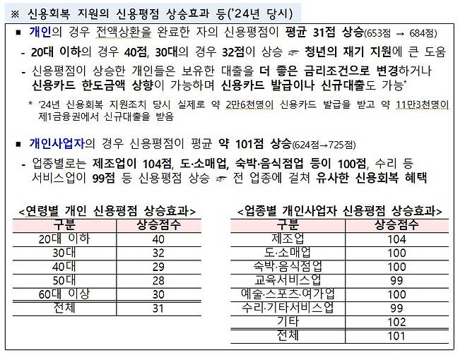 이 정책은 단순한 기록 삭제가 아니라, 실제 신용평점 상승으로 금융 금리 인하·신규대출 한도 확대 등 실생활 혜택까지 제공된다.