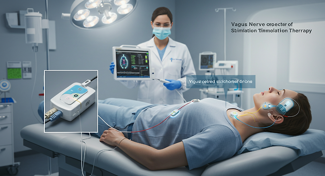 - 미주신경자극치료: 장기화된 이명으로 대뇌가 이상 활성화됐을 때 적용