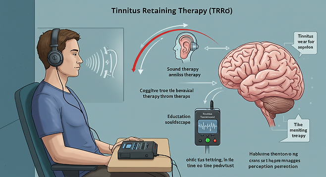 소리 치료는 이명을 덜 듣도록 유도하는 방법으로, 다음과 같은 방식이 있습니다.