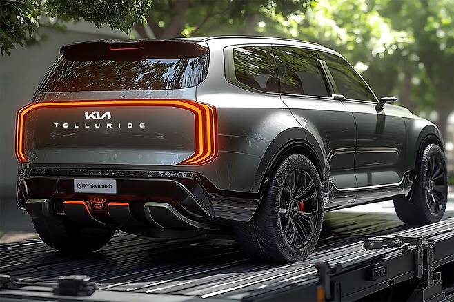 신차 예상도 유튜브 채널 ‘뉴욕맘모스’는 텔루라이드 디자인 예상도 공개와 함께 AI가 예측한 예상도를 함께 공개했다. 콘셉트카가 떠오르는 화려한 디자인이 반영된 것이 특징이다. 특히 과감한 펜더 볼륨과 얇게 처리된 디지털 사이드 미러 등이 눈길을 끈다.
