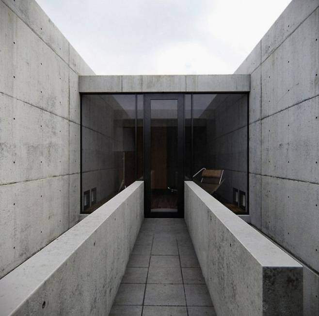 일본 오사카의 주택가 어딘가, 평범한 골목에 마치 벙커 같은 두꺼운 콘크리트 집 한 채가 있다. 이 건물은 ‘스미요시 나가야’ 혹은 ‘아즈마 주택’으로 불린다. 천재 건축가 안도 다다오의 데뷔작이자, 그를 세계적인 거장으로 이끈 대표작이다. 외부에서는 창 하나 없이 두껍게 닫힌 콘크리트 벽과 날카로운 형태로, 일반인이 보기엔 차갑고 방어적인 모습이지만, 안도의 의도는 오히려 정반대였다. 그는 이 건물 한복판에 ‘지붕 없는 중정’을 과감히 설계했다. 한 집안에 자연광과 하늘, 그리고 바람과 비까지 실내로 들이는 새로운 주거방식을 제시한 셈이다.