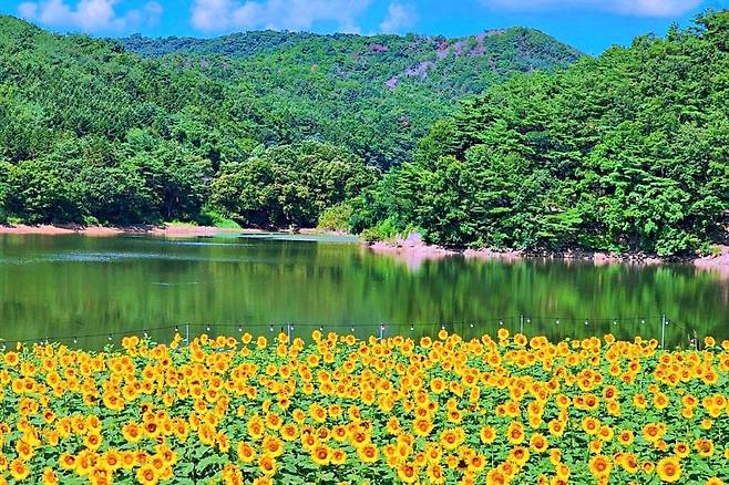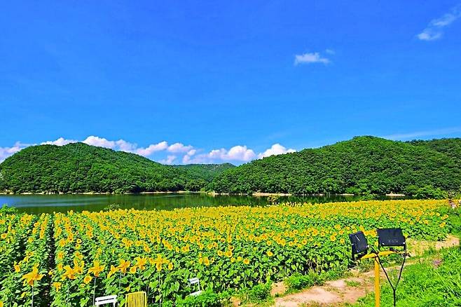 해바라기 밭 앞에서 사진을 찍어도 충분히 예쁜 사진을 남길 수 있을 정도로 가득 만개해 있으니 관람 예절을 지킬 것을 강력하게 권한다.
