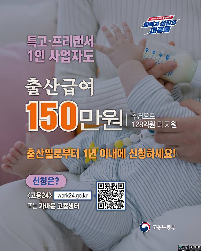 혼자서 열심히 일하고 있는 1인 사업자, 프리랜서, 특수고용 근로자 여러분! 출산을 앞두고 있거나 최근에 출산하셨나요? 고용보험의 보호를 받지 못해 출산휴가급여를 받을 수 없어 걱정이셨다면, 이제 안심하셔도 됩니다! 💪