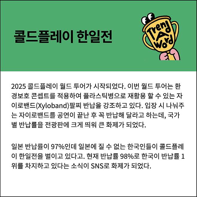 오늘 에디터와 함께 콜드플레이 한일전에 대해 알아보자!