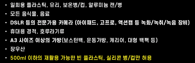 일회용 음료 반입 금지는 물론이고,