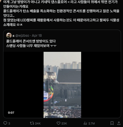 콜드플레이의 환경보호 메시지가 가득 담긴 콘서트이고,