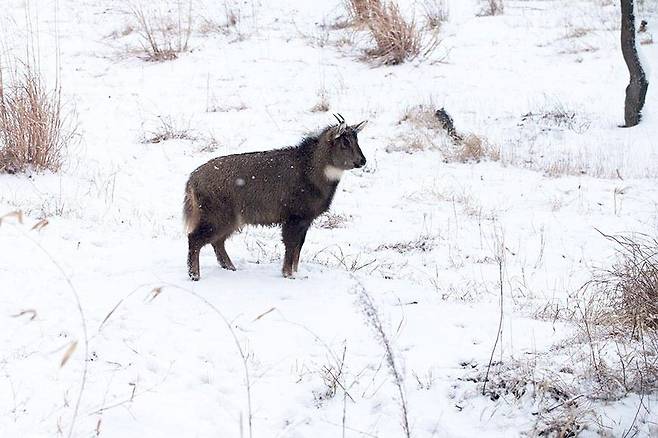 산양은 험준한 산길도 거침없이 오르는 산의 귀염둥이입니다. 작은 뿔 위로 햇빛이 반짝이는 모습은 정말 사랑스럽죠. 산양 역시 보호가 필요한 멸종 위기 동물로, 야생에서 쉽게 볼 수 없는 귀한 존재입니다.