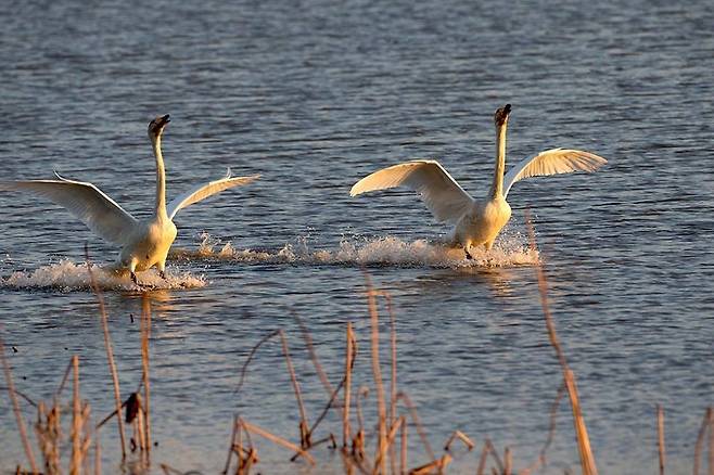 큰고니 역시 보호가 필요한 1급 멸종 위기 동물로, 겨울철 날아다니는 모습을 보는 순간 감탄이 절로 나옵니다.