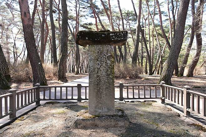 관음송에서 이어지는 숲길에는 단종어소와 금표비가 남아 있습니다. 단종어소는 유배 시절 머물던 공간을 복원한 곳이며, 금표비는 일반인의 출입을 막기 위해 세운 경계 표식입니다.