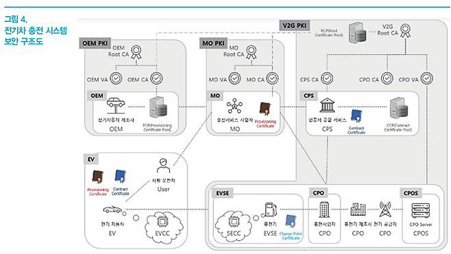 EVSE의 소프트웨어가 해킹될 경우, 공격자는 충전 기능 ●ISO/IEC 15118 기반 보안 강화 ISO/IEC 15118 표준은 전기차와 충전기 간의 인증 및 데이터 교환을 표준화하여, 보안성을 높이는 역할을 한다. 특히, Plug & Charge 기능을 통해 차량이 자동으로 충전기에 인증될 수 있도록 설계되었지만, 인증서 위조, 세션 하이재킹