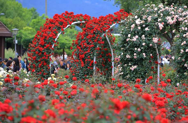 국내 최대 규모 장미축제입니다.세계장미정원과 야간 조명이 특히 유명합니다.